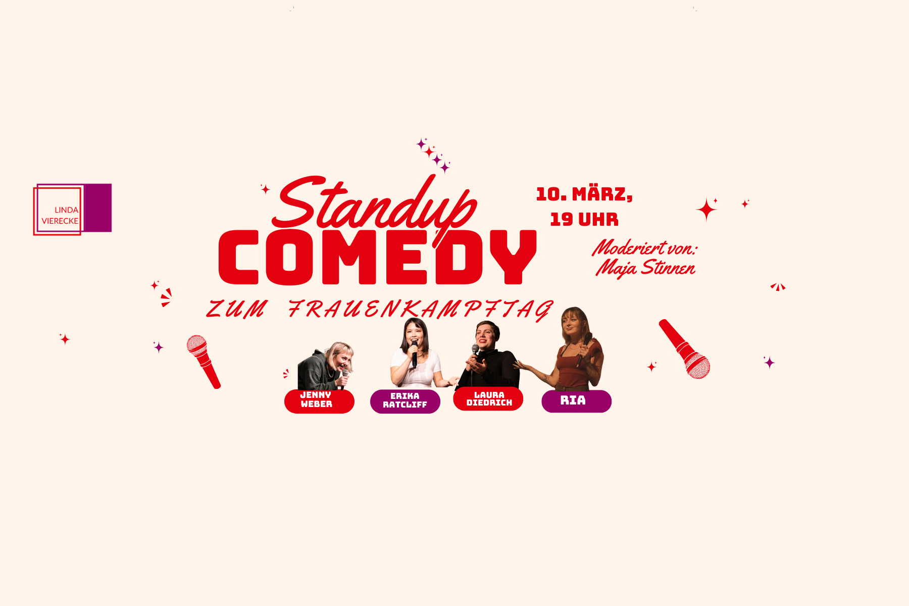 Außerdem geht’s um Sichtbarkeit. Wenn mehr Frauen auf der Bühne stehen, trauen sich auch mehr, es selbst zu probieren. Und das sorgt für noch mehr Vielfalt, noch mehr Perspektiven – und vor allem noch mehr gute Comedy.